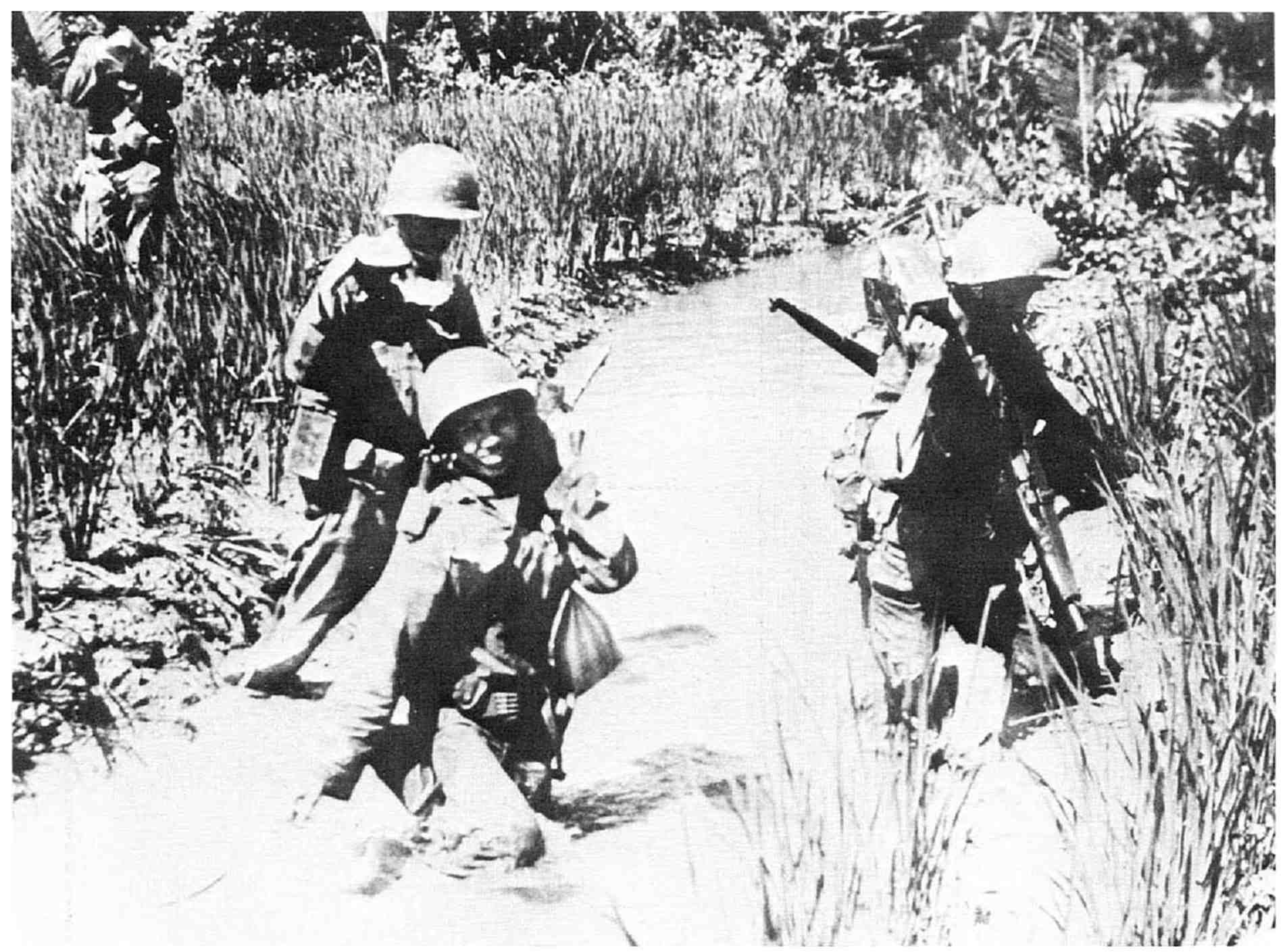 Even with rapidly increasing amounts of U.S. material assistance, the French proved unable to wrest the initiative from Giap’s growing armies. Although national armies drawn from Cambodia, Laos, and Vietnam were now fighting alongside the French, the Expeditionary Corps was over-extended. Moreover, the French cause was extremely vulnerable to Communist propaganda. On the home front, public support for the so-called sale guerre (dirty war) eroded steadily during the early 1950s as the Expeditionary Corps’ failures and casualties mounted. Finally, on 7 May 1954, the besieged 13,000-man French garrison at Dien Bien Phu surrendered to the Viet Minh, thus shattering what remained of French determination to prosecute the war in Indochina. In Geneva, where Communist and Free World diplomats had gathered to consider a formal peace in Korea along with the Indochina problem, French and Viet Minh representatives signed a cease-fire agreement on 20 July which ended the eight-year conflict.