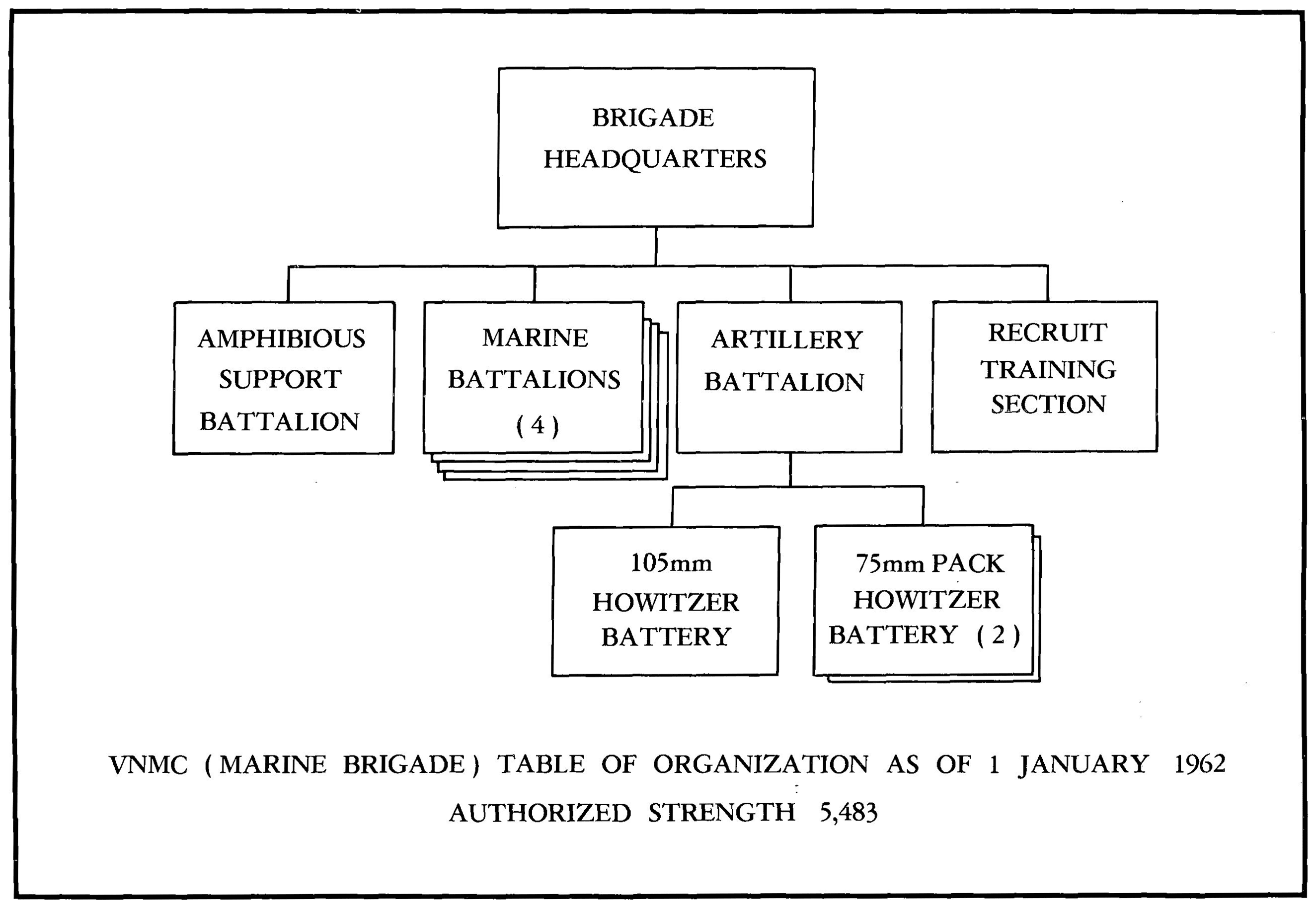 In short, the very existence of the Vietnamese Marine Corps was threatened in a number of inter-related situations. The continuation of a separate and distinct Marine Corps hinged ultimately, of course, on the overall reorganization of the Vietnamese armed forces and their support structure. Essentially it would be necessary to establish a requirement for such an organization within South Vietnam’s future military-naval structure. Croizat personally sensed that this would be the pivotal issue in determining the VNMC’s future. “There were numerous representatives of the three military services from each of the three countries concerned with the fate of the Vietnamese Army, Navy, and Air Force,” he pointed out. “But, there was no champion from within the Vietnamese Marine Corps since no Corps existed except on paper.”[2-3] Thus, it was left initially to a French captain, a Vietnamese major, and a U.S. Marine lieutenant colonel to keep alive the idea that South Vietnam’s defense establishment needed a separate Marine Corps.