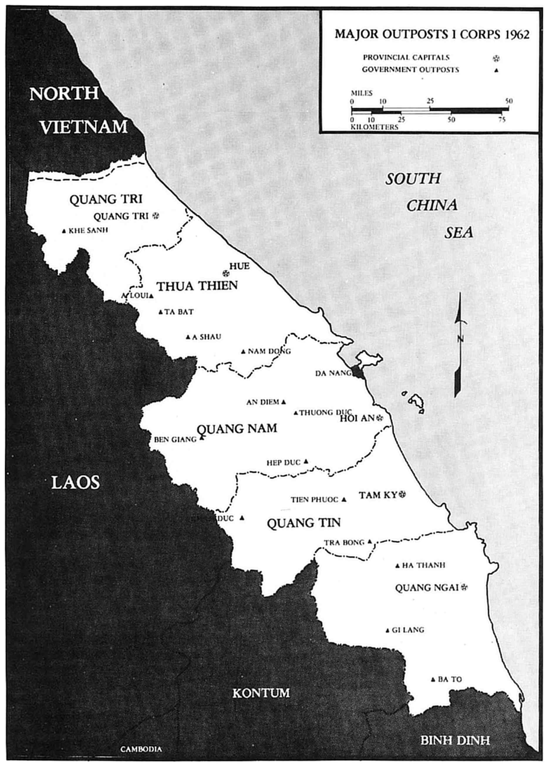 Since mid-1954 the area known collectively as Vietnam has been divided into northern and southern states. South Vietnam (known after 1956 as the Republic of Vietnam), where the earliest U.S. military activities were focused, came to include all of former Cochinchina and the southern half of Annam. The geography of this small state, described in general terms, is rugged and difficult. The lengthy country shares often ill-defined jungle boundaries with Laos and Cambodia in the west and with the Democratic Republic of Vietnam (DRV) to the north. Its land borders total almost 1,000 miles—600 with Cambodia, 300 with Laos, and roughly 40 with North Vietnam. Approximately65 1,500 miles of irregular coastline on the Tonkin Gulf and the South China Sea complete the enclosure of its 66,000-square mile area.